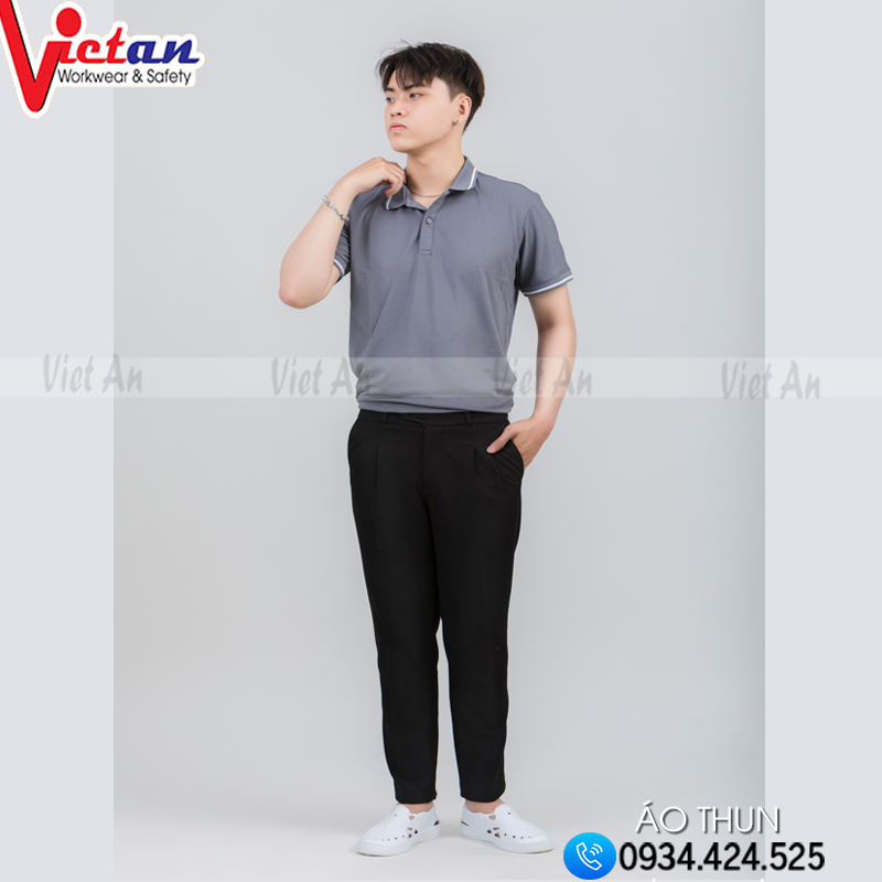 -Kiểu dáng : áo thun đồng phục cổ trụ hoặc cổ tròn ngắn tay, logo thêu hoặc in ngực trái.