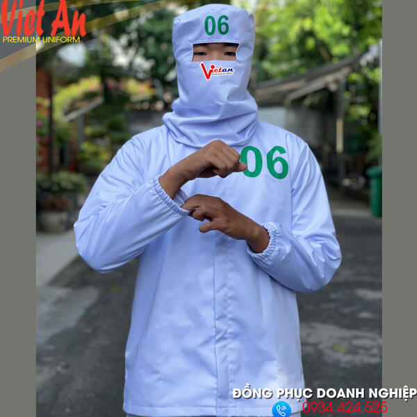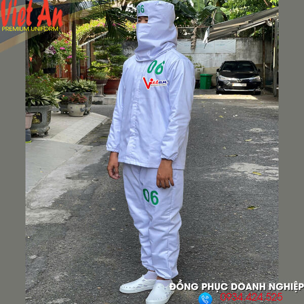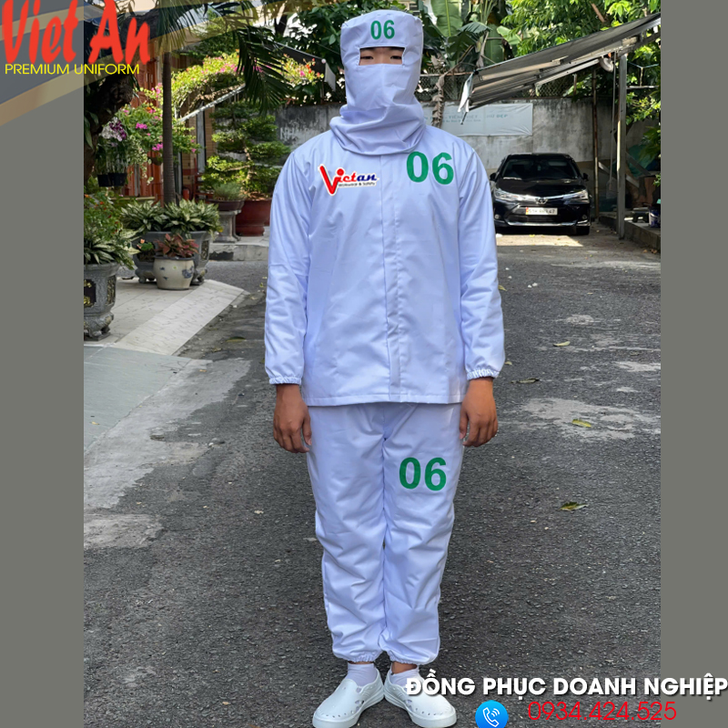 --Quần áo thực phẩm được sản xuất bởi Cty Việt An chuyên dụng trong ngành chế biến thực phẩm, thủy sản, phòng sạch, được phẩm,