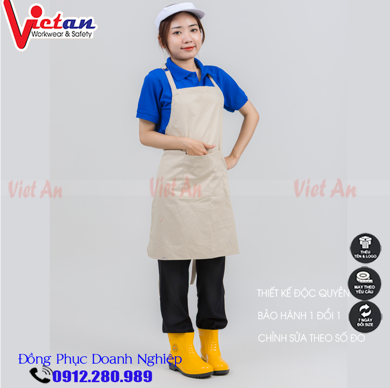 -Tạp dề nhà hàng được Cty Việt An sản xuất bằng chất liệu vải kaki NTT, Kaki cotton, kaki Hàn..