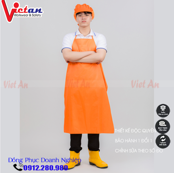 -Mẫu tạp dề nhựa chống thấm nước được may bằng chất liệu nhựa PVC siêu nhẹ, siêu bền và chống thấm tối đa.
