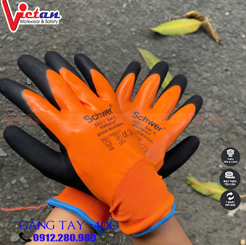 Găng tay kho lạnh chuyên dụng, giữ ấm và bảo vệ toàn bộ các ngón tay, chống bụi bẩn và nước – lý tưởng cho kho đông lạnh, kho thủy sản và các công việc lạnh khác.