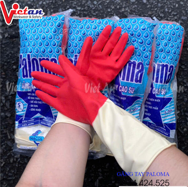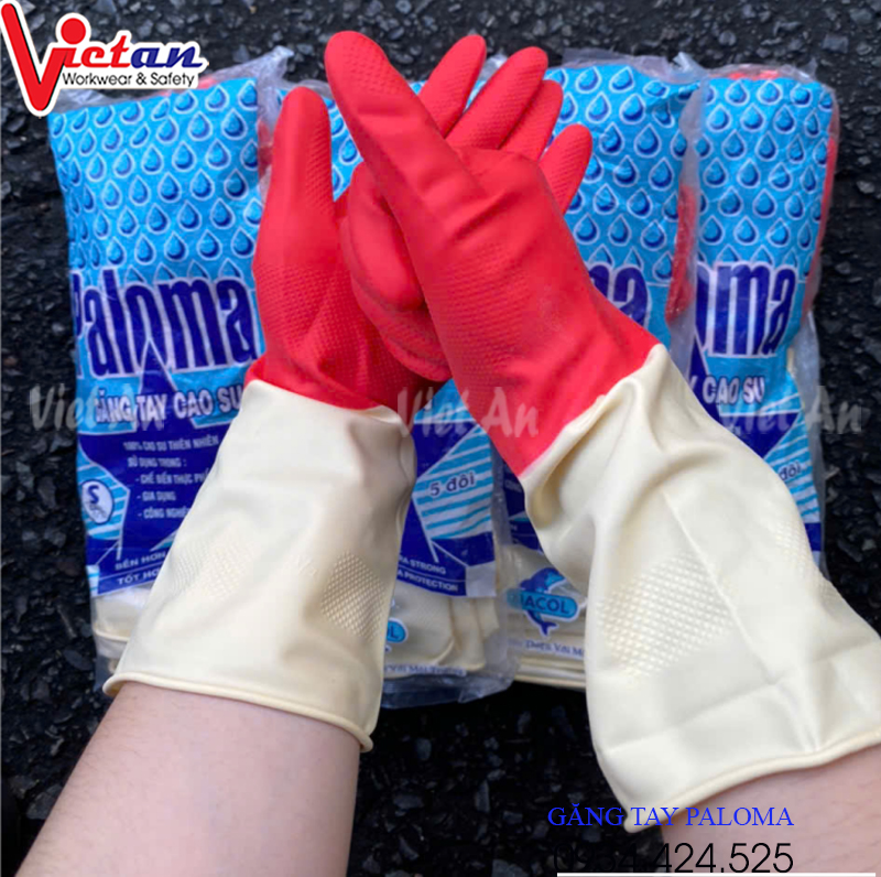 Găng Tay Cao Su Paloma Đỏ Phối Kem GTCS11